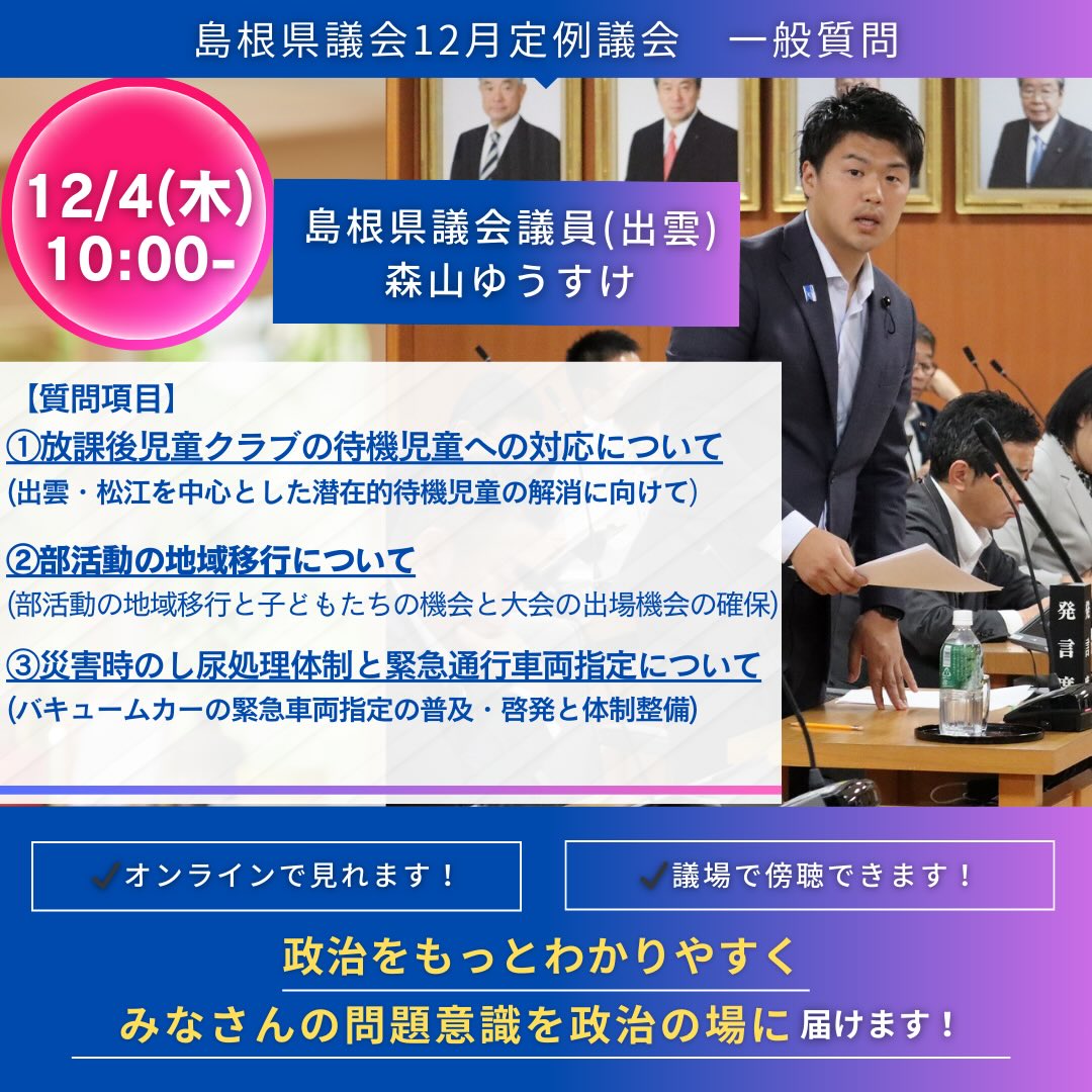 【森山ゆうすけ・島根県議会一般質問12/4(木)】